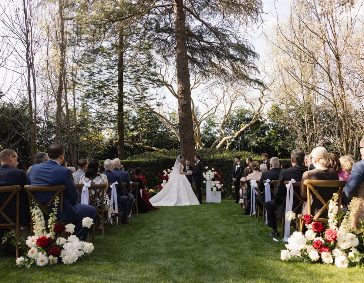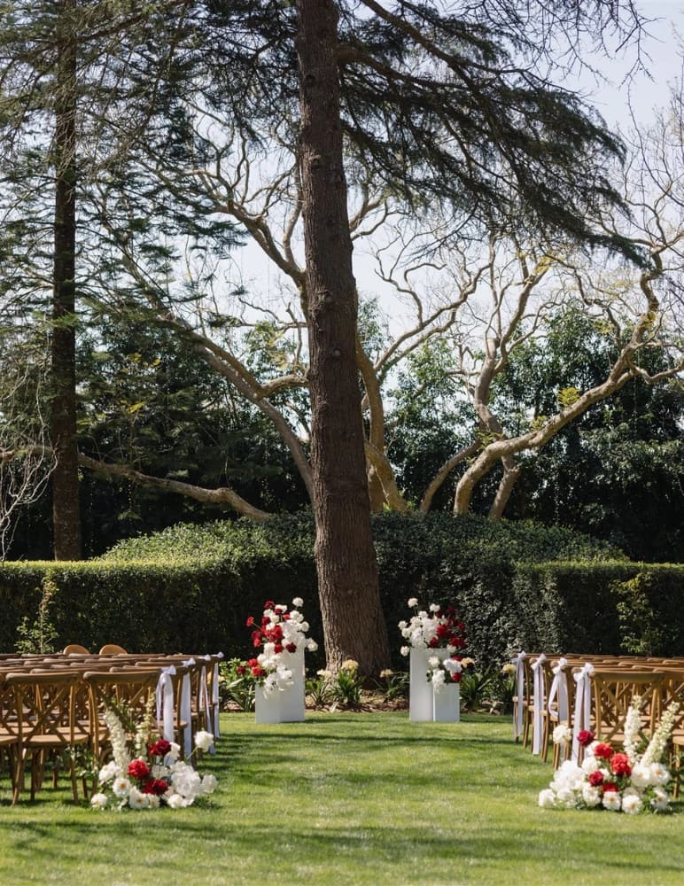 The Gabbinbar gardens are over 160 years old and cover many acres of the wedding venue. The large fig, bunya and cedar trees were planted in 1863 and tower over the historic estate creating a feeling of calmness and tranquility, seamlessly blending serene indoor and outdoor spaces. These evergreen trees, combined with freshly mowed lawns, precision-trimmed hedging and seasonal blooms leave an indelible imprint that lingers in memories for years to come.